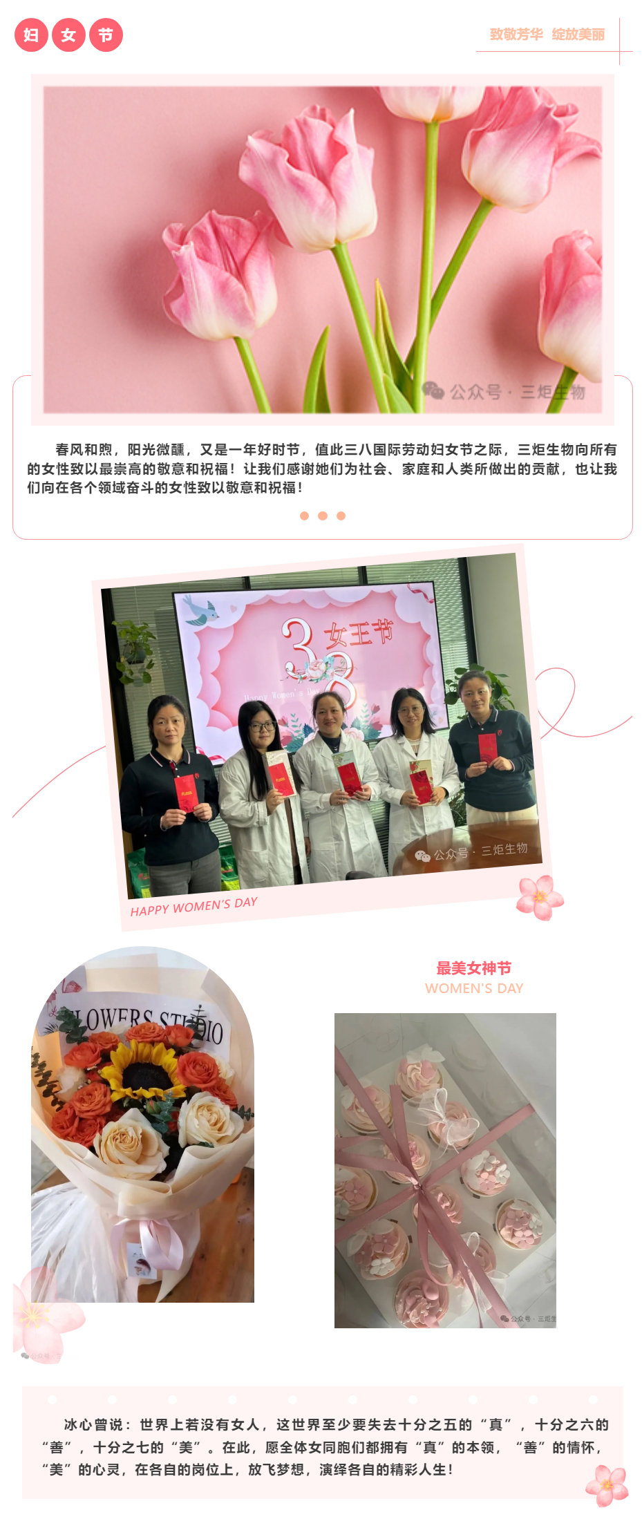 值此三八國(guó)際勞動(dòng)?jì)D女節(jié)之際,三炬生物向所有的女性致以最崇高的敬意和祝福!